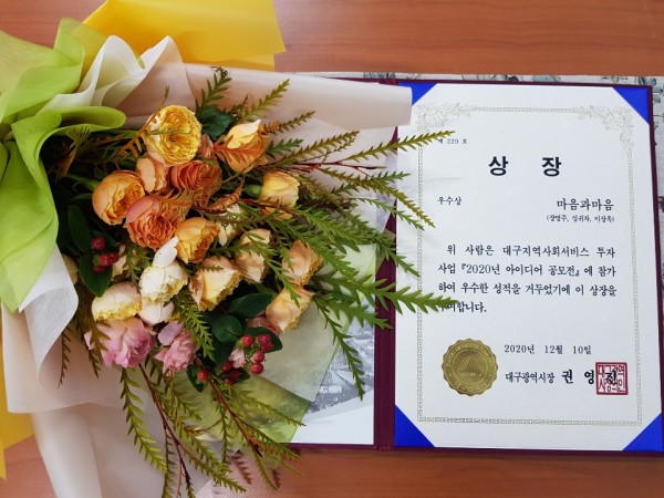 2020년도 지역사회서비스 투자사업 아이디어 공모전에서 마음과마음이 우수상을 수상하였습니다.